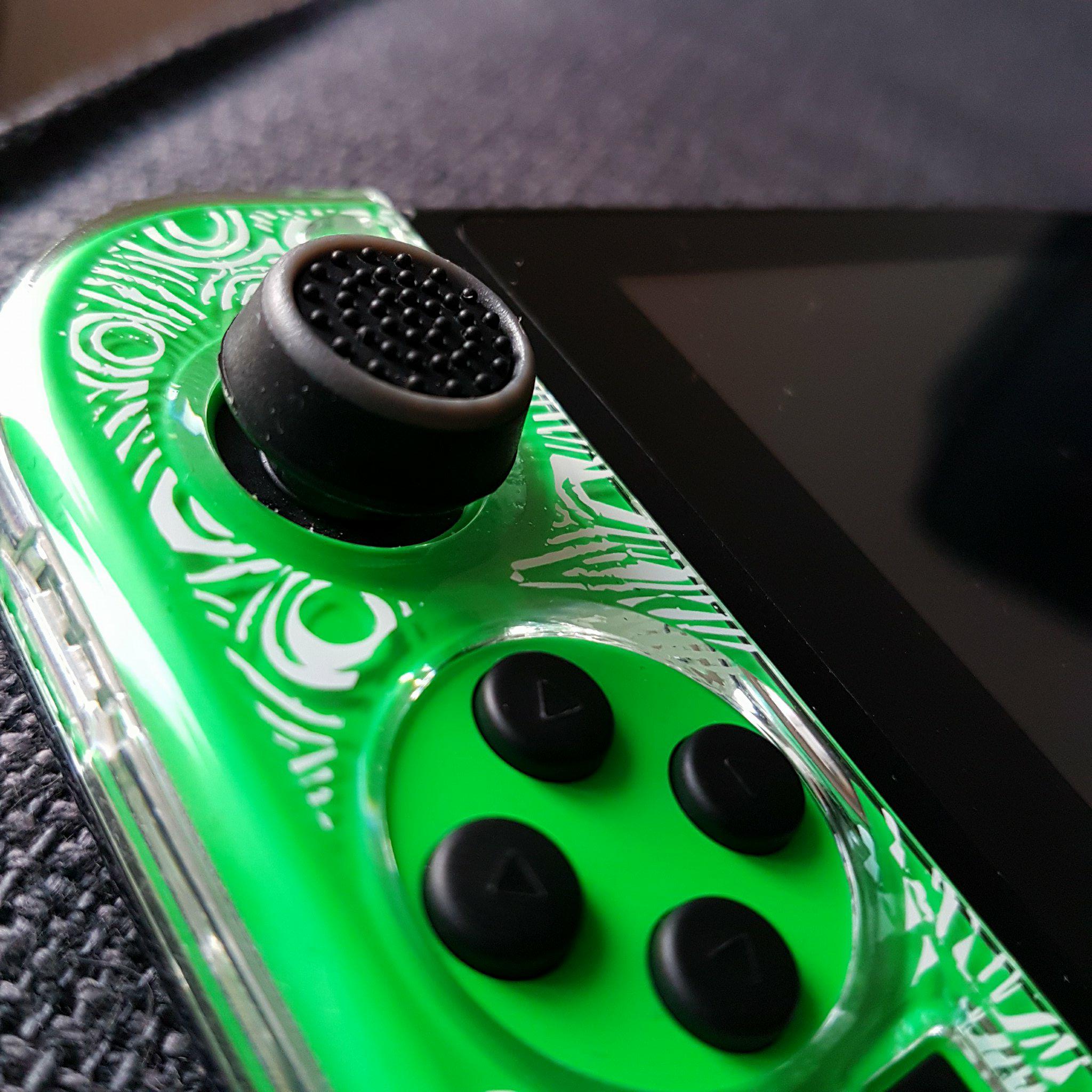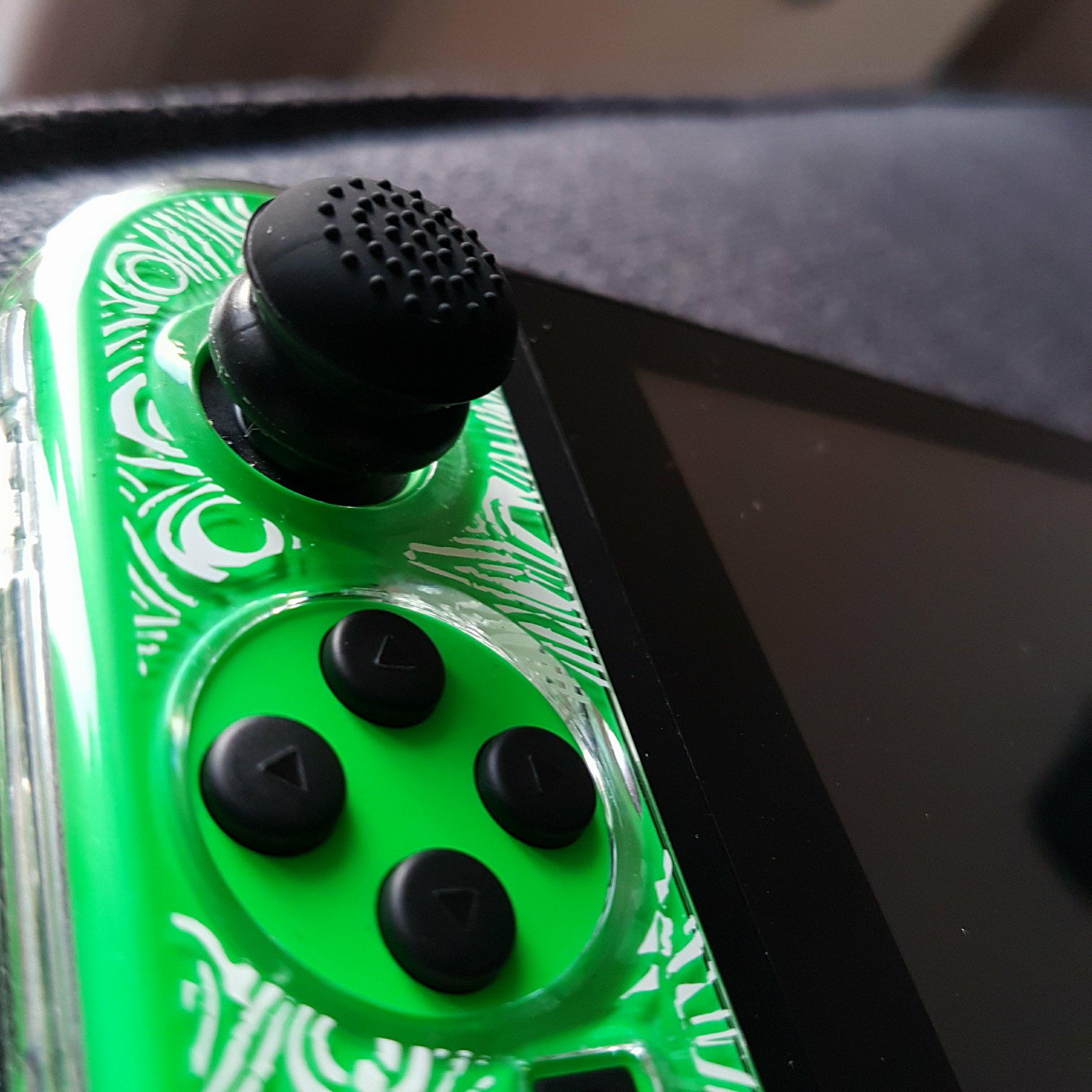 Ce qui s’est passé, c’est que le capuchon souple qui recouvre le joystick s’était soulevé sur un bord, probablement à cause d’un frottement au moment de ranger la console dans sa housse. Un pli avait dû se former à force de rester dans cette position malencontreuse…