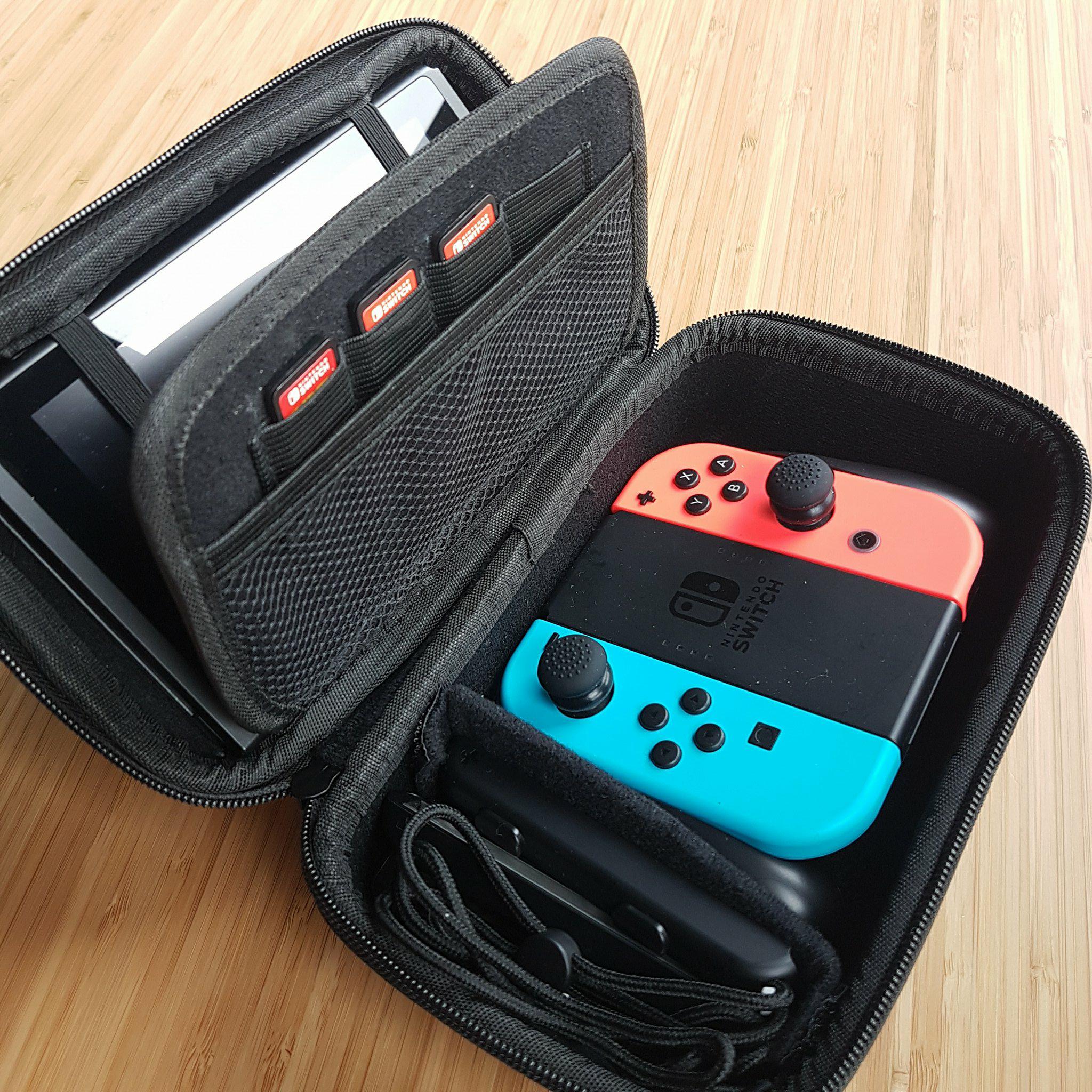 C’est la base. Pour transporter la switch en toute sécurité, il vaut mieux s’en procurer une. Cependant, il faut savoir bien la choisir. Vous avez le choix entre les housses souples et les semi-rigides. Les premières offrent une protection moindre mais sont beaucoup moins encombrantes. Les secondes prennent plus de place mais protègent mieux votre console. Je ne dirais pas qu’un type de housse vaut mieux qu’un autre, j’en possède de chaque sorte qui correspondent à différents besoins. Au moment de choisir la housse qui vous convient, posez-vous surtout la question de la fréquence de transport et la place que vous avez pour le faire. Gardez bien en tête que les housses souples n’empêchent pas les frottements des joysticks à l’intérieurs, mais sont beaucoup plus pratiques au quotidien.