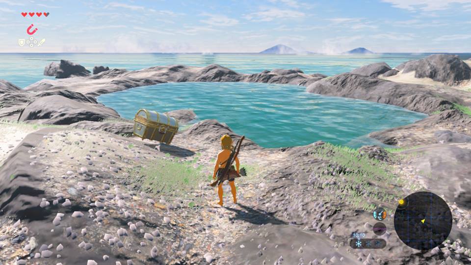 Depuis la pointe nord, on se dirige de nouveau vers le sud-est, vers le poste d’observation bokoblin où se trouvait le premier orbe. Mais cette fois-ci, en passant par la côte et en explorant les nombreux récifs situés plus loin, on trouvera de nombreux objets utiles. Cherchez les coffres coincés entre les roches ou bien coulés au fond de l’eau. Le large récif en forme d’anneau à la pointe sud-est de l’Île Finalis fait bien partie de la zone et peut être exploré sans en sortir (Points d’intérêt n°5).